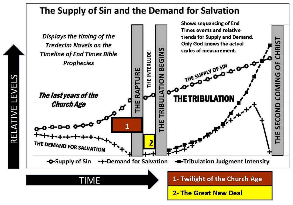 Lifeline for the Lost Sheep was written from our current perspective. A world populated by about eight billion people, using modern technology to support current standards of living. As previously described, we see the supply of sin climbing and the falling demand for salvation through Jesus Christ. Our presumption is that the world will look very much like this at the tipping point of the Rapture, when Jesus calls all who believe in Him (alive and dead) to join Him in the sky and depart for heaven.